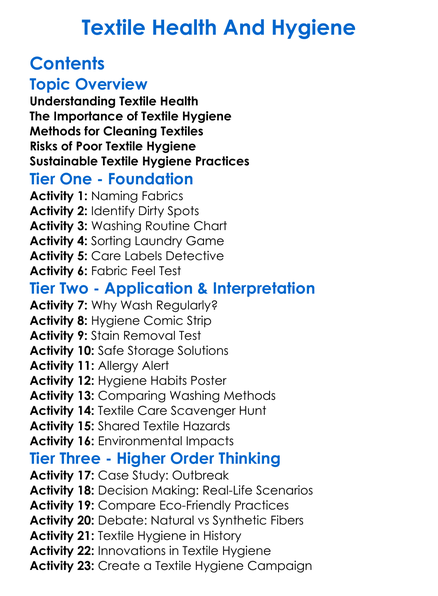 Textile Health And Hygiene Worksheet Activity Booklet