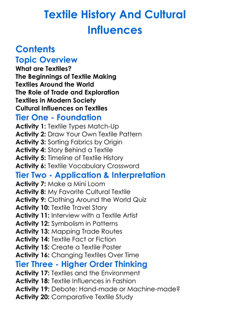 Textile History And Cultural Influences Worksheet Activity Booklet