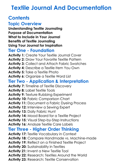 Textile Journal And Documentation Worksheet Activity Booklet