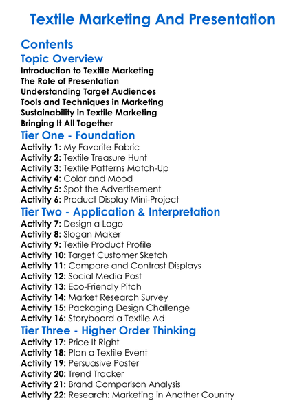 Textile Marketing And Presentation Worksheet Activity Booklet