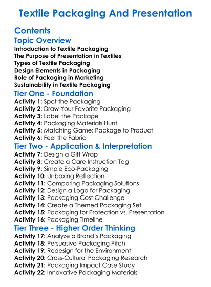 Textile Packaging And Presentation Worksheet Activity Booklet