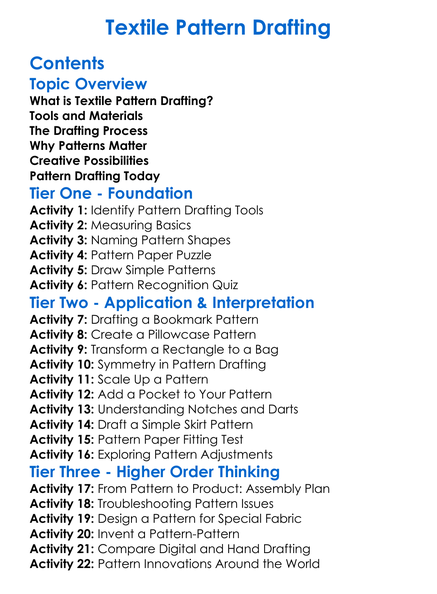 Textile Pattern Drafting Worksheet Activity Booklet