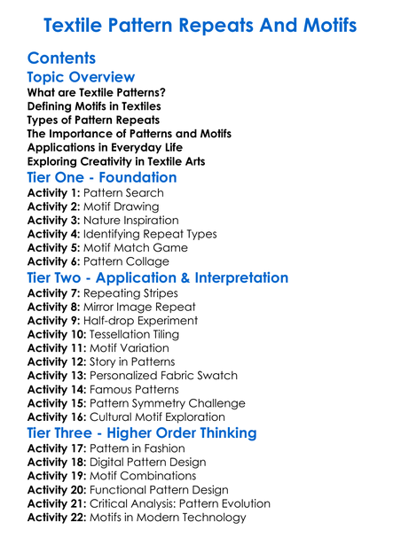 Textile Pattern Repeats And Motifs Worksheet Activity Booklet