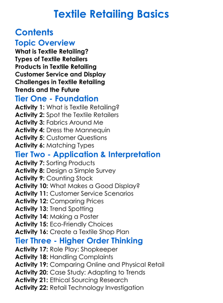 Textile Retailing Basics Worksheet Activity Booklet