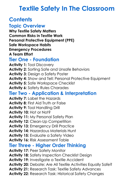 Textile Safety In The Classroom Worksheet Activity Booklet