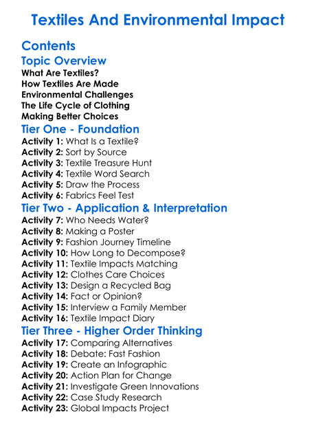 Textiles And Environmental Impact Worksheet Activity Booklet