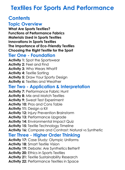 Textiles For Sports And Performance Worksheet Activity Booklet