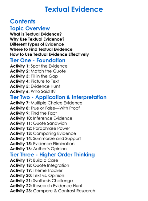 Textual Evidence Worksheet Activity Booklet