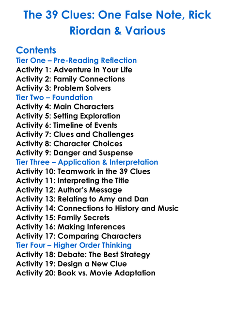The 39 Clues One False Note Rick Riordan Various Worksheet Activity Booklet