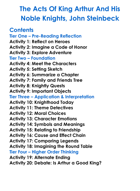The Acts Of King Arthur And His Noble Knights John Steinbeck Worksheet Activity Booklet
