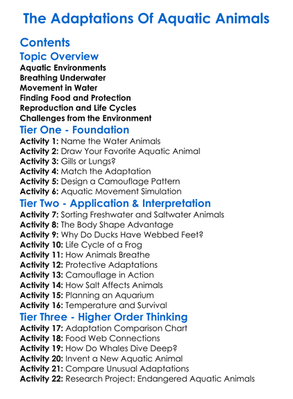 The Adaptations Of Aquatic Animals Worksheet Activity Booklet