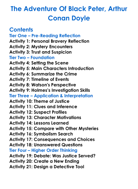 The Adventure Of Black Peter Arthur Conan Doyle Worksheet Activity Booklet