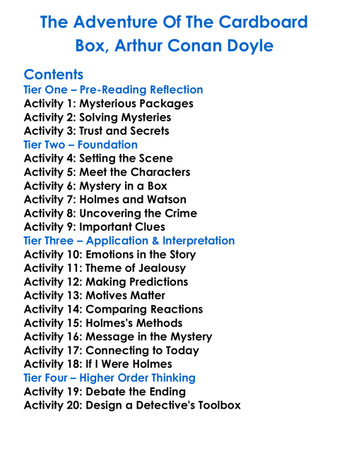 The Adventure Of The Cardboard Box Arthur Conan Doyle Worksheet Activity Booklet