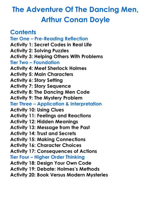 The Adventure Of The Dancing Men Arthur Conan Doyle Worksheet Activity Booklet