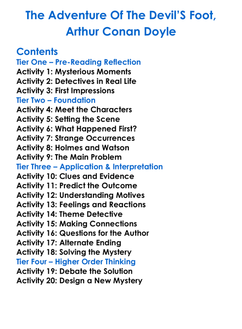The Adventure Of The Devils Foot Arthur Conan Doyle Worksheet Activity Booklet