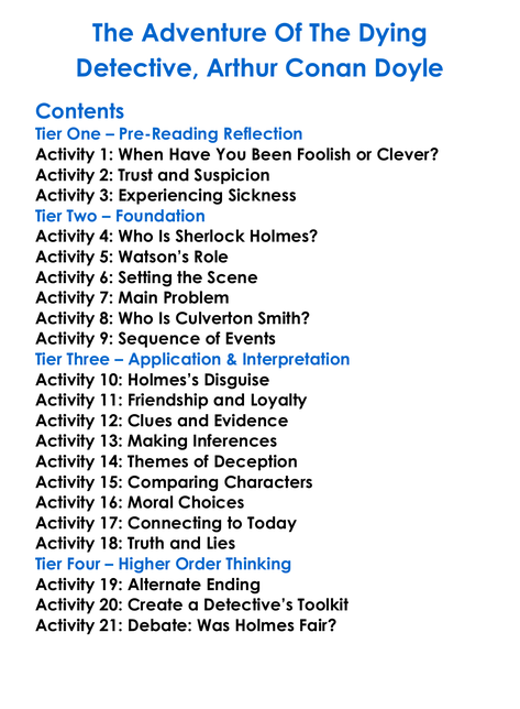 The Adventure Of The Dying Detective Arthur Conan Doyle Worksheet Activity Booklet