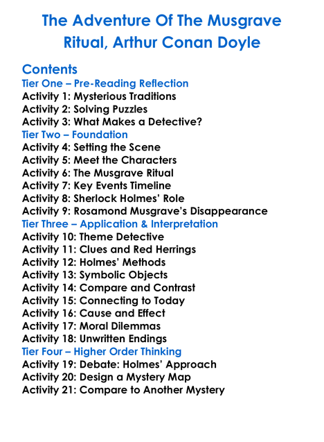 The Adventure Of The Musgrave Ritual Arthur Conan Doyle Worksheet Activity Booklet