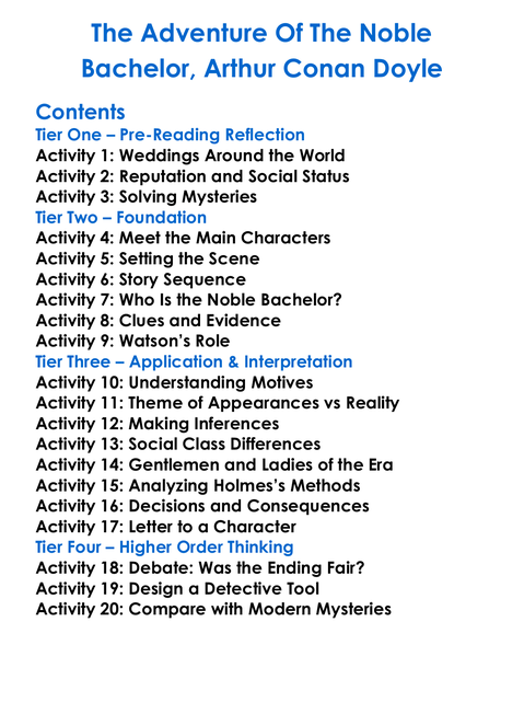 The Adventure Of The Noble Bachelor Arthur Conan Doyle Worksheet Activity Booklet