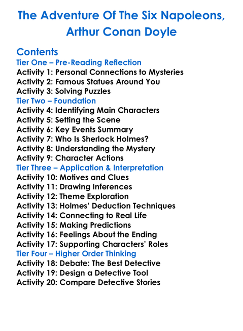 The Adventure Of The Six Napoleons Arthur Conan Doyle Worksheet Activity Booklet