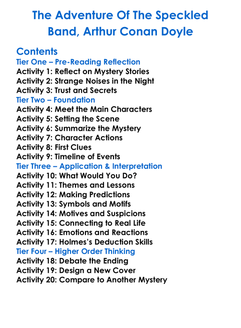 The Adventure Of The Speckled Band Arthur Conan Doyle Worksheet Activity Booklet