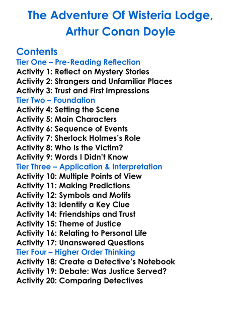 The Adventure Of Wisteria Lodge Arthur Conan Doyle Worksheet Activity Booklet