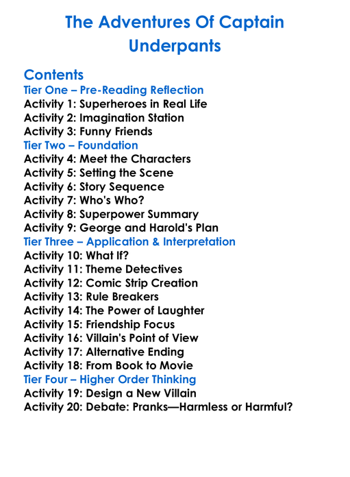 The Adventures Of Captain Underpants Worksheet Activity Booklet