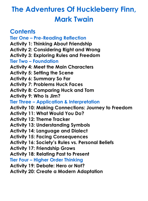 The Adventures Of Huckleberry Finn Mark Twain Worksheet Activity Booklet