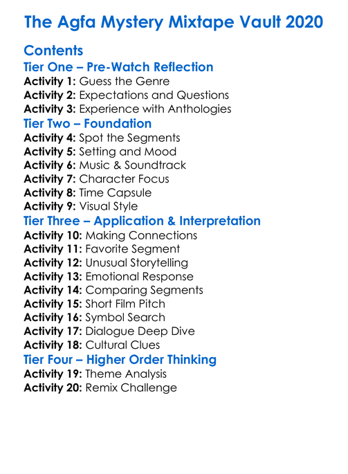 The Agfa Mystery Mixtape Vault 2020 Worksheet Activity Booklet
