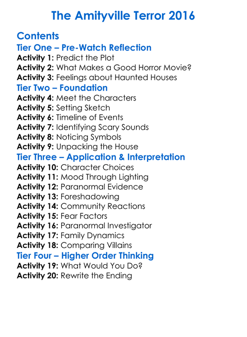 The Amityville Terror 2016 Worksheet Activity Booklet