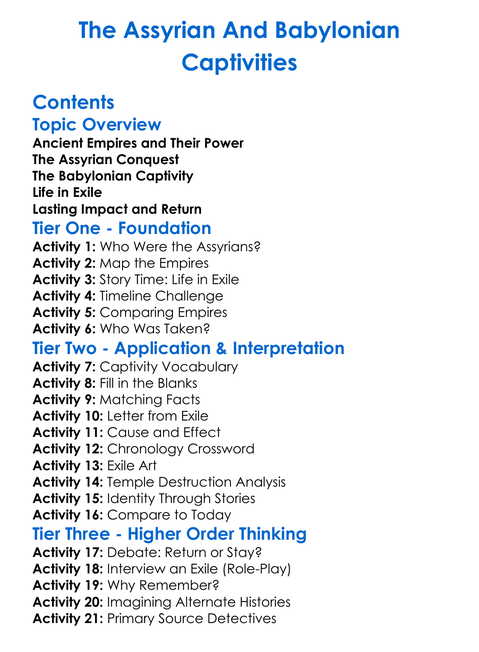 The Assyrian And Babylonian Captivities Worksheet Activity Booklet