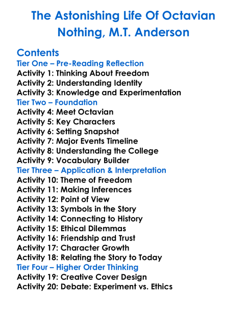 The Astonishing Life Of Octavian Nothing Mt Anderson Worksheet Activity Booklet
