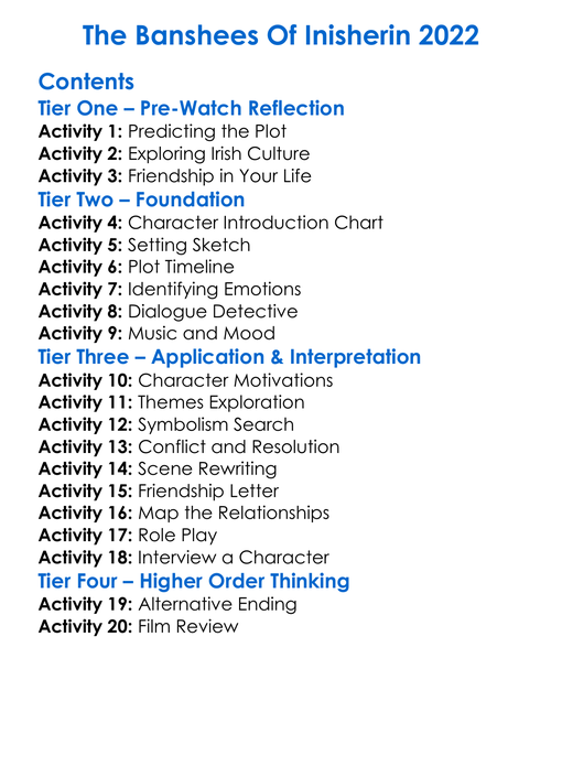 The Banshees Of Inisherin 2022 Worksheet Activity Booklet