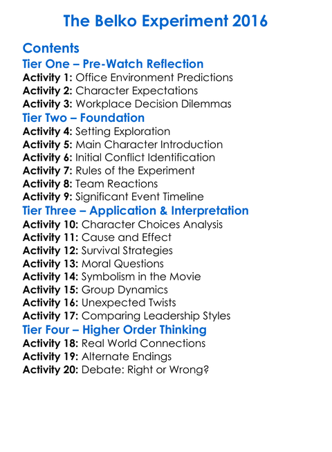 The Belko Experiment 2016 Worksheet Activity Booklet