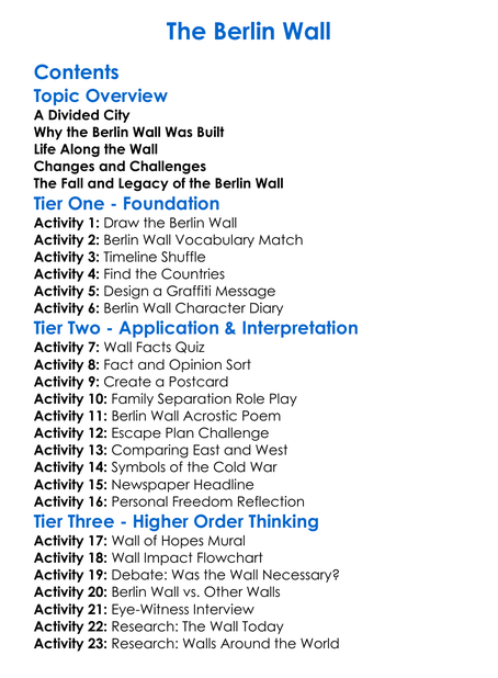 The Berlin Wall Worksheet Activity Booklet