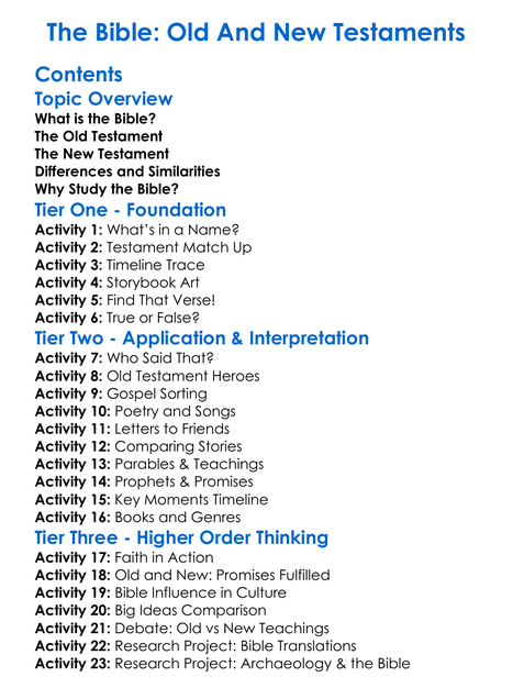 The Bible Old And New Testaments Worksheet Activity Booklet