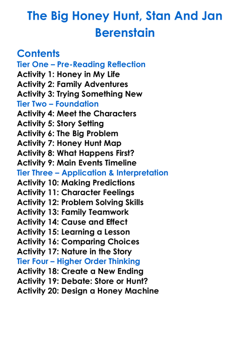 The Big Honey Hunt Stan And Jan Berenstain Worksheet Activity Booklet