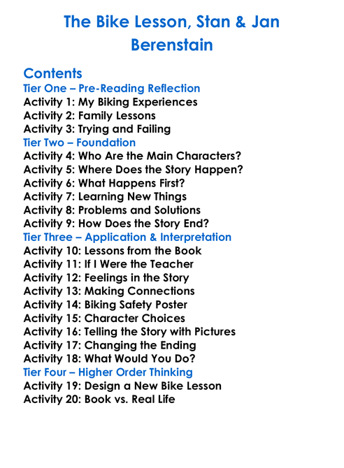 The Bike Lesson Stan Jan Berenstain Worksheet Activity Booklet