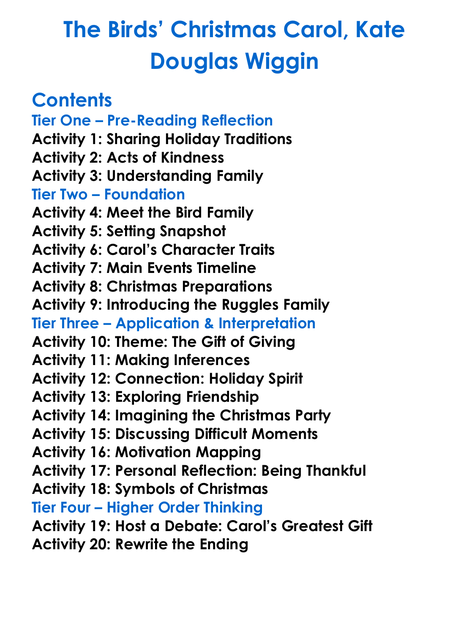 The Birds Christmas Carol Kate Douglas Wiggin Worksheet Activity Booklet
