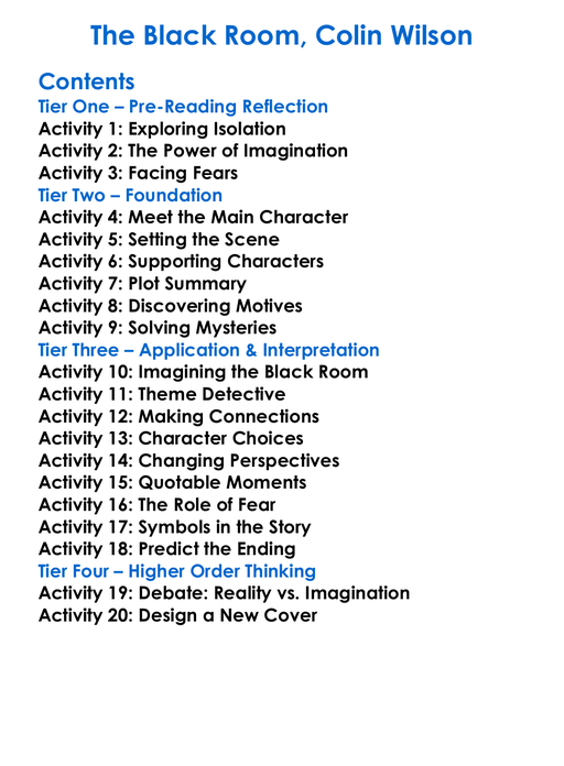 The Black Room Colin Wilson Worksheet Activity Booklet