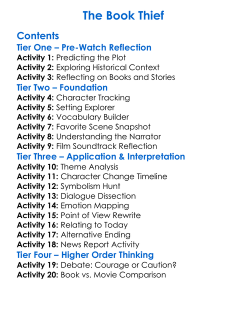 The Book Thief Worksheet Activity Booklet