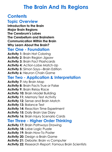 The Brain And Its Regions Worksheet Activity Booklet