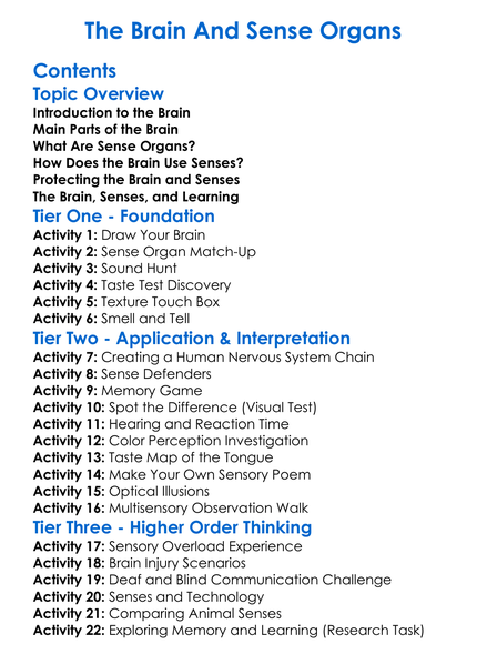 The Brain And Sense Organs Worksheet Activity Booklet