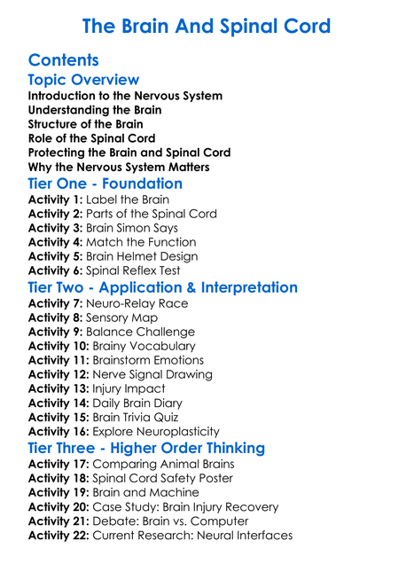 The Brain And Spinal Cord Worksheet Activity Booklet