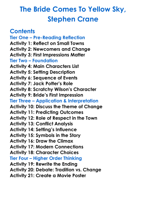 The Bride Comes To Yellow Sky Stephen Crane Worksheet Activity Booklet