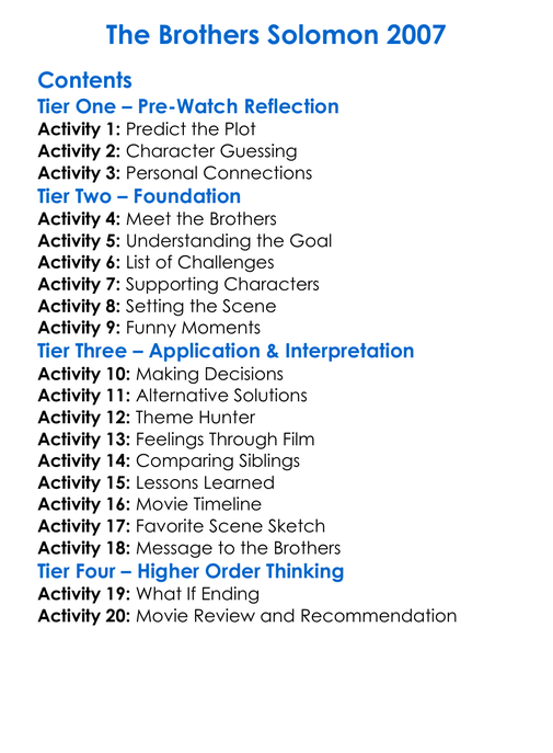 The Brothers Solomon 2007 Worksheet Activity Booklet