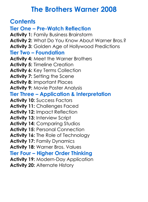 The Brothers Warner 2008 Worksheet Activity Booklet