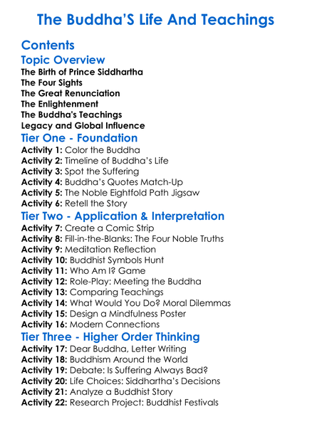 The Buddhas Life And Teachings Worksheet Activity Booklet