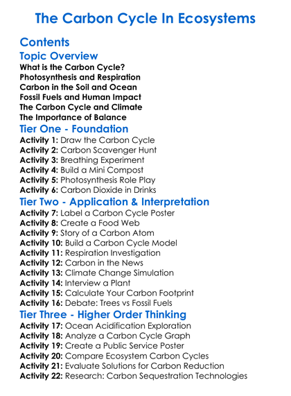 The Carbon Cycle In Ecosystems Worksheet Activity Booklet