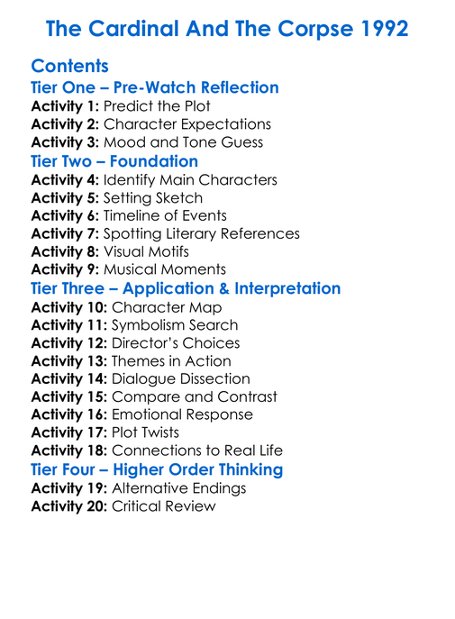 The Cardinal And The Corpse 1992 Worksheet Activity Booklet