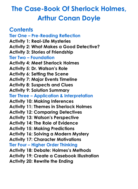 The Case-Book Of Sherlock Holmes Arthur Conan Doyle Worksheet Activity Booklet